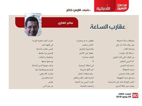 في مجلة الإذاعة والتليفزيون قصيدة صالح الغازي عقارب الساعة