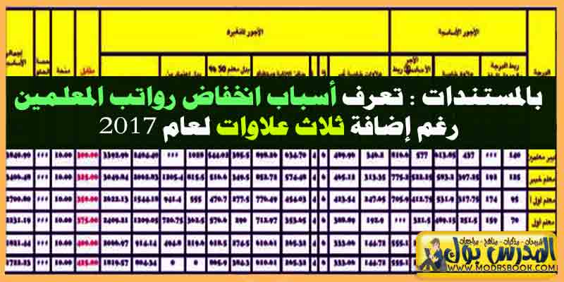 تعرف أسباب انخفاض رواتب المعلمين رغم إضافة ثلاث علاوات لعام 2017