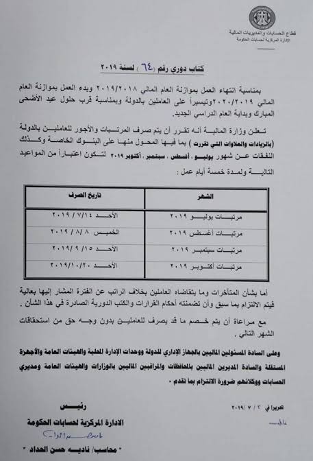اسباب خفض مرتبات الموظفين فى شهر يوليو 2015