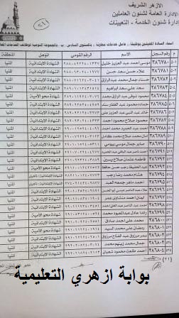 اسماء المقبولين فى وظيفة خدمات معاونة مسابقة الازهر 2016