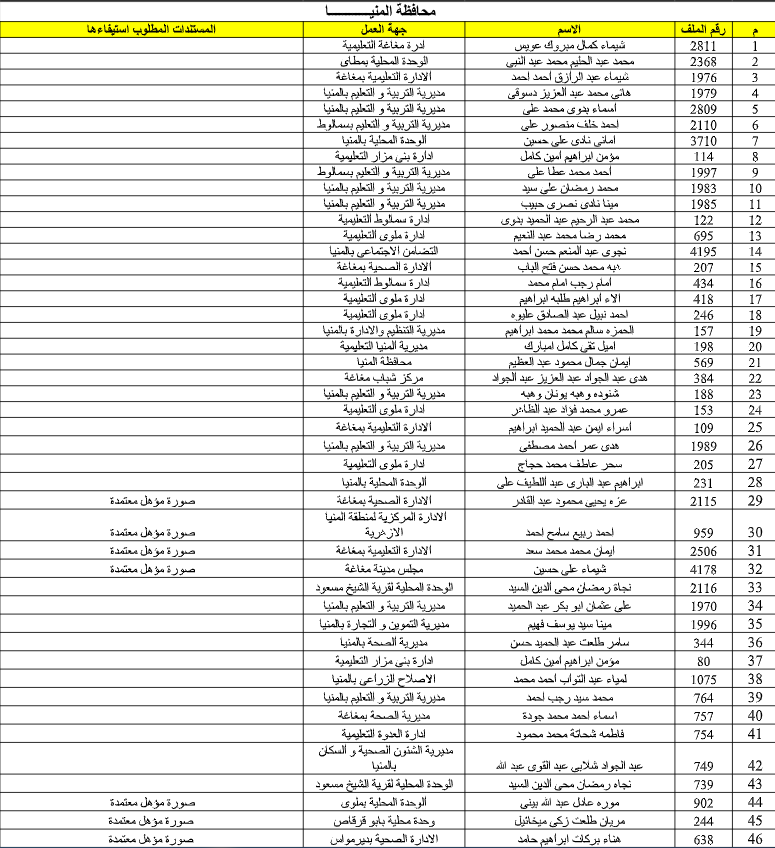 كشف بأسماء المستوفين للمقابلة الشخصية 2019 بمحافظة المنيا الشهر العقارى وزارة العدل